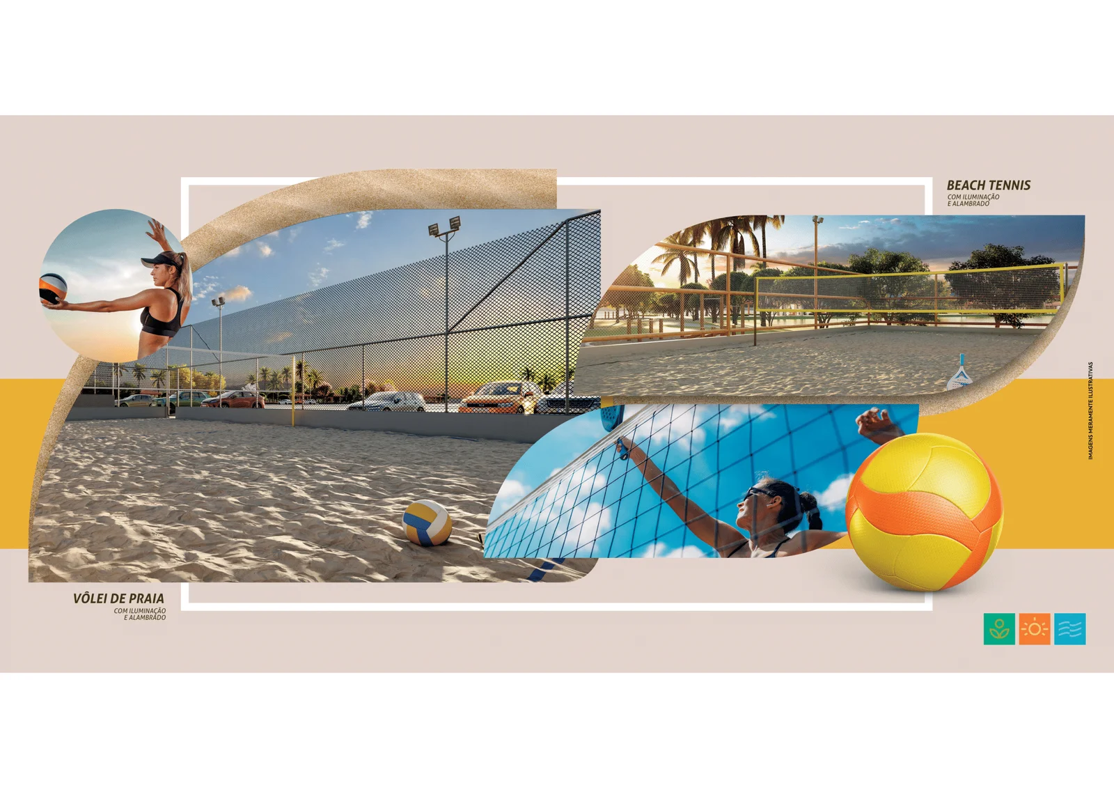 * Quadras de beach tennis e vôlei de praia iluminadas